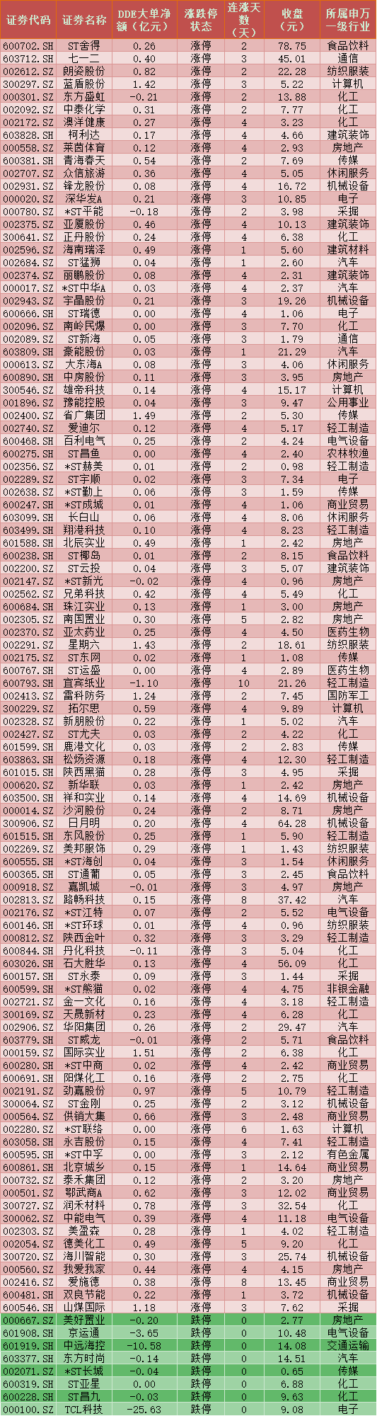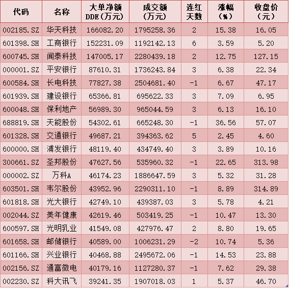 一、周二(1月19日)DDE大單資金凈買(mǎi)入TOP20