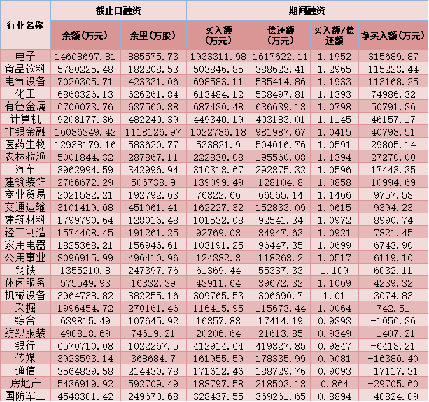六、截至1月18日申萬(wàn)一級(jí)行業(yè)兩融交易情況