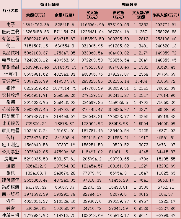 六、2月18日申萬一級(jí)行業(yè)兩融交易情況