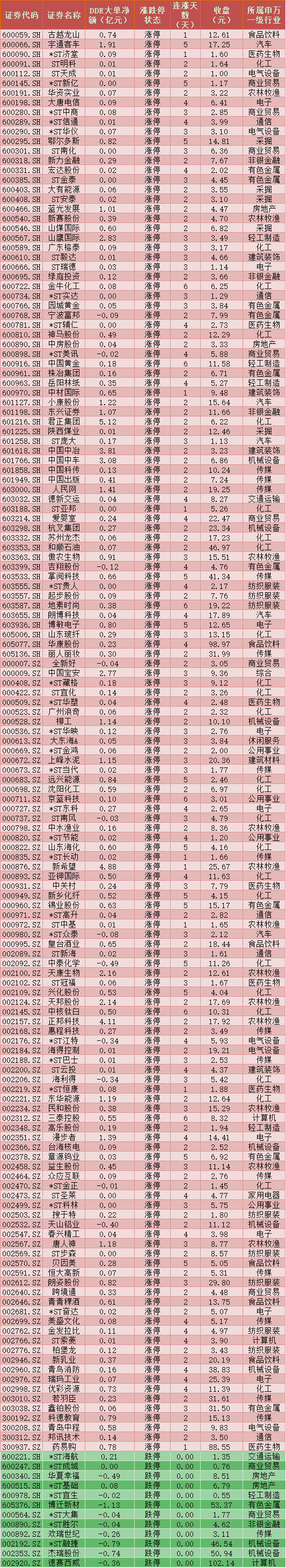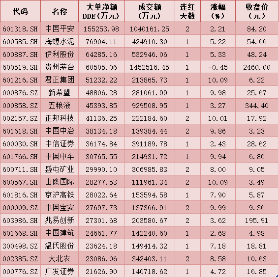 一、周五(2月19日)DDE大單資金凈買入TOP20
