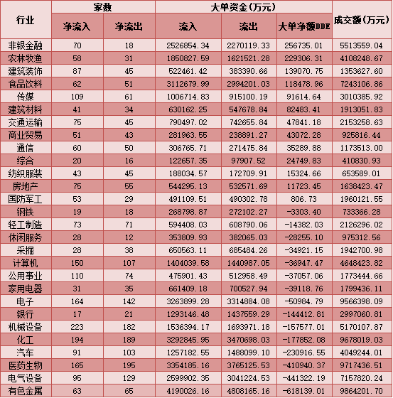 二、周五(2月19日)申萬一級(jí)行業(yè)大單資金流向