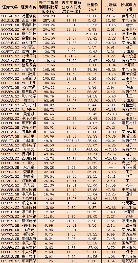表:56家年報(bào)凈利潤和營業(yè)收入同比雙增長公司情況: