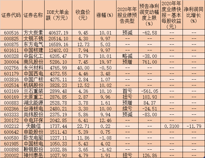表:3月8日實現(xiàn)超千萬元大單資金追捧的核電概念股