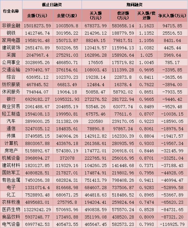 六、3月5日申萬(wàn)一級(jí)行業(yè)兩融交易情況