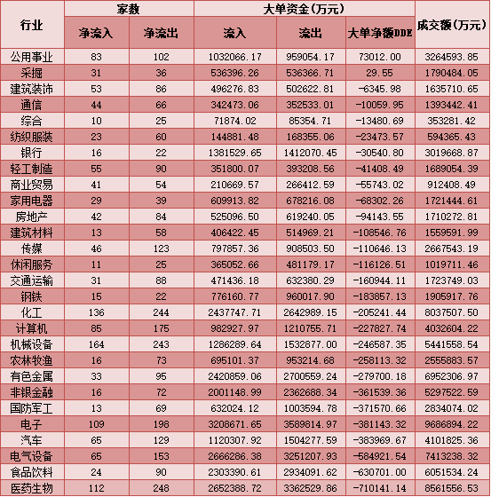 二、周一(3月8日)申萬(wàn)一級(jí)行業(yè)大單資金流向