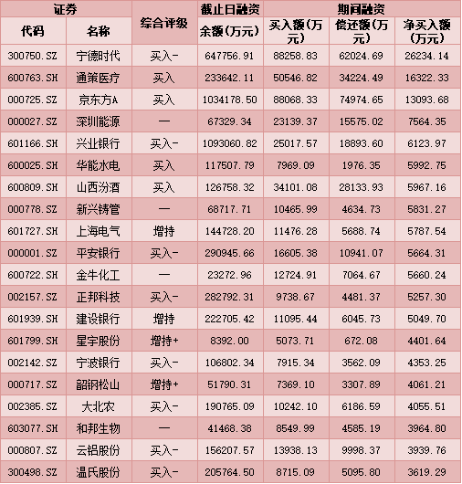 七、3月10日融資凈買入股TOP20