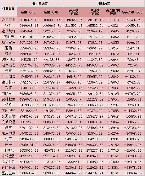 六、3月10日申萬(wàn)一級(jí)行業(yè)兩融交易情況