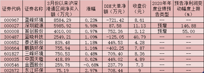 與此同時(shí),作為“聰明錢”的北向資金也已敏銳地捕捉到固廢處理概念股的投資機(jī)會(huì)。3月份以來(lái),有10只固廢處理概念股獲得北向資金凈買入,期間合計(jì)凈買入2.42億元。盈峰環(huán)境、深圳能源、首創(chuàng)股份、藍(lán)曉科技等4只概念股最受追捧,期間累計(jì)北上資金凈買入額均在千萬(wàn)元,泰達(dá)股份、鵬鷂環(huán)保、三峰環(huán)境、中國(guó)天楹、金圓股份、東江環(huán)保等6只概念股期間也受到北上資金的青睞,后市表現(xiàn)值得期待。