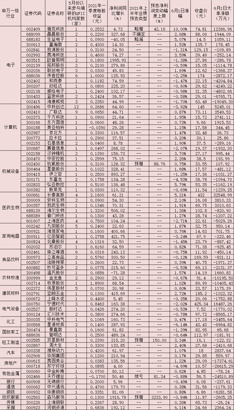 表:5月份以來獲QFII密集調(diào)研的公司一覽