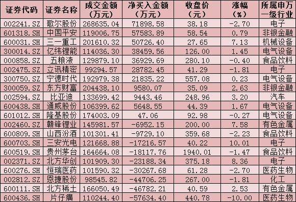 四、周四(7月22日)滬、深股通前十大成交活躍股交易情況