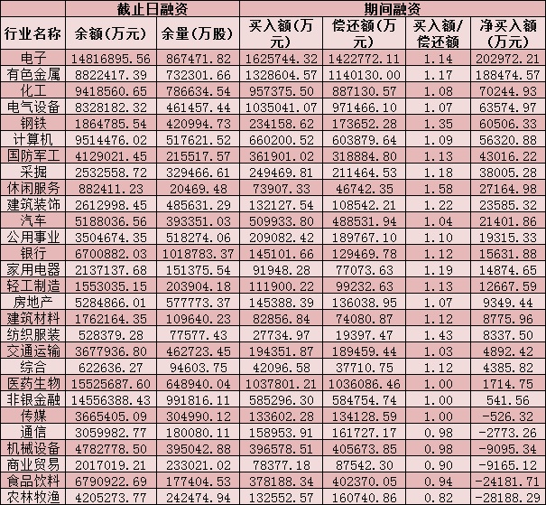 六、截至7月21日申萬一級行業(yè)兩融交易情況