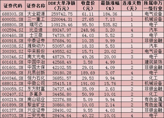 一、周四(7月22日)DDE大單資金凈買入TOP20