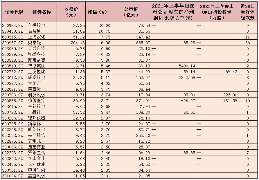表:8月23日漲幅超2%三孩概念股一覽