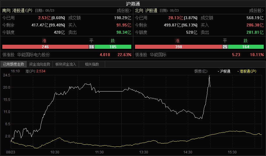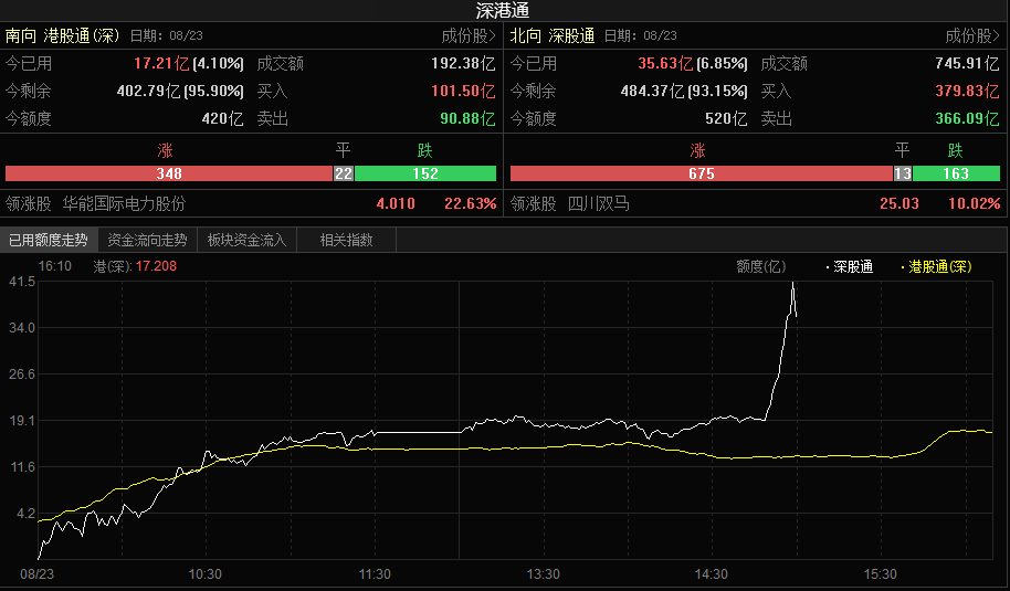 8月23日,A股三大指數(shù)持續(xù)拉升,集體漲超1%,創(chuàng)業(yè)板指表現(xiàn)最強(qiáng),截至收盤,上證指數(shù)漲1.45%,深證成指漲1.98%,創(chuàng)業(yè)板指漲3.16%;滬深兩市合計(jì)成交額13225.60億元,兩市成交額連續(xù)24個(gè)交易日突破1萬億元;北向資金凈買入18.31億元;總體來看,兩市個(gè)股普漲,超3600只個(gè)股上漲。