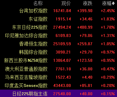 今天不僅A股實(shí)現(xiàn)上漲,整個(gè)亞太市場均出現(xiàn)不同程度的上漲。除滬深兩市外,亞太主要股指有5個(gè)漲幅超1%。