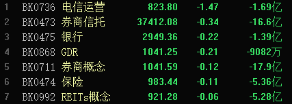電信運(yùn)營、券商、銀行、保險(xiǎn)等板塊,是為數(shù)不多的下跌板塊。