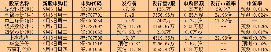 下周8只新股即將開啟申購!根據(jù)初步安排,9月6日-9月10日A股市場將迎來8只新股申購。