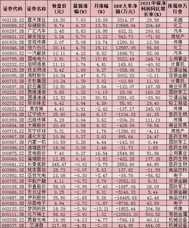 值得關(guān)注的是,東北振興概念股的業(yè)績普遍較好。統(tǒng)計發(fā)現(xiàn),在38只東北振興概念股中,今年上半年凈利潤同比實現(xiàn)增長的公司達(dá)30家,占比近八成。其中,北方稀土、芯源微、國電電力、美吉姆、夢網(wǎng)科技、華錦股份、廣匯汽車、福瑞股份、歐亞集團(tuán)、奧維通信、出版?zhèn)髅降?1家公司,上半年凈利潤同比增幅均超100%。