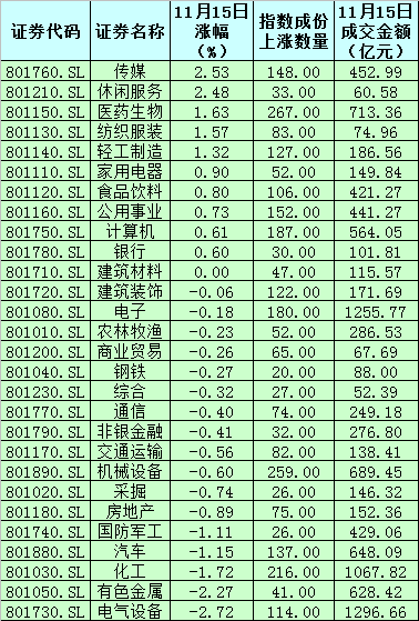 周一(11月15日)申萬一級(jí)行業(yè)市場(chǎng)表現(xiàn)情況:
