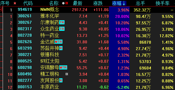 NMN“長(zhǎng)壽藥”概念股爆發(fā)
