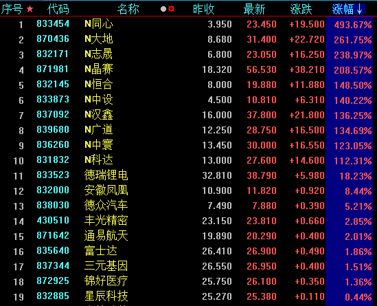 這10只新股行情火爆,盤中均觸發(fā)二次臨停,同心傳動(dòng)漲幅一度超過500%,最終收漲493.67%,大地電氣漲261.75%,志晟信息漲238.97%,晶賽科技漲208.57%。