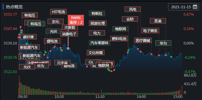 11月15日,長(zhǎng)壽藥NMN概念發(fā)力,雅本化學(xué)、眾生藥業(yè)、特一藥業(yè)漲停,爾康制藥、金達(dá)威等個(gè)股漲幅也均在5%以上。