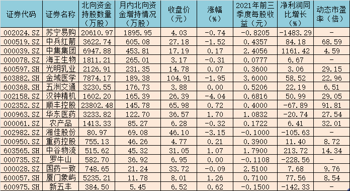 表:12月份以來(lái)受到北向資金增持的冷鏈物流概念股