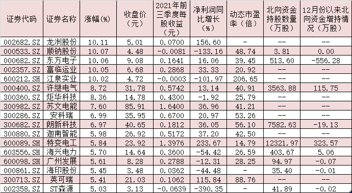 受利好提振,12月15日,充電樁板塊指數(shù)表現(xiàn)強勢,盤中板塊指數(shù)最高上探至4912.44點,創(chuàng)下2015年6月15日以來的階段新高,該板塊指數(shù)整體逆市上漲1.2%,跑贏上證指數(shù)(跌幅為0.38%),位居大智慧板塊漲幅榜前列。具體到個股方面,龍洲股份、順鈉股份、東方電子、富臨運業(yè)、江泉實業(yè)、ST森源等6只概念股漲停,許繼電氣、炬華科技、蘇文電能、安科瑞、朗新科技也分別大漲8.72%、8.36%、7.60%、6.99%、6.97%。值得一提的是,國電南瑞、安科瑞、思源電氣等3只概念股今日盤中股價創(chuàng)出歷史新高。