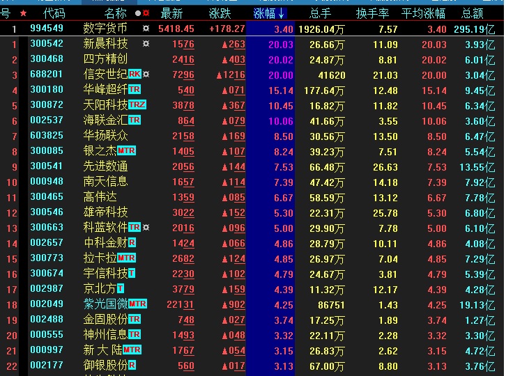 周一,數(shù)字貨幣概念強(qiáng)勢(shì)拉升,截至收盤,板塊漲幅達(dá)3.4%位居漲幅榜首位。4只概念股集體漲停,其中,四方精創(chuàng)、新晨科技、信安世紀(jì)等3只個(gè)股20CM漲停。