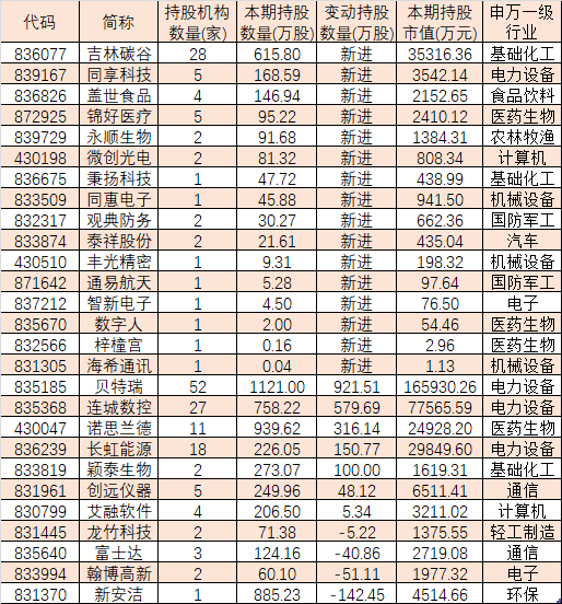 具體來看,去年四季度公募基金新進持有16只北交所公司股票,吉林碳谷、同享科技、蓋世食品等3只個股去年四季度公募基金新進數(shù)量均超百萬股;貝特瑞、連城數(shù)控、諾思蘭德、長虹能源、穎泰生物、創(chuàng)遠儀器、艾融軟件等7只個股去年四季度被公募基金繼續(xù)加倉操作。