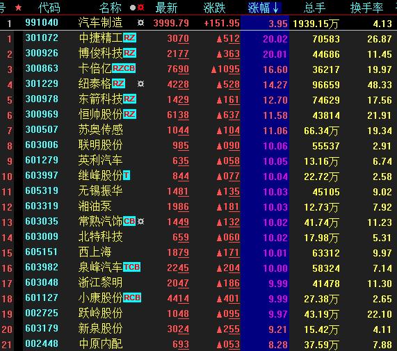 熱點(diǎn)二:汽車制造板塊飆升近4% 14股漲停
