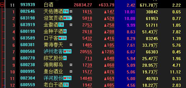 與此同時(shí),白酒股異動(dòng)拉升。截至4月26日上午收盤,板塊漲幅達(dá)2.42%,天佑德酒、迎駕貢酒和金徽酒等3只白酒股聯(lián)袂漲停。