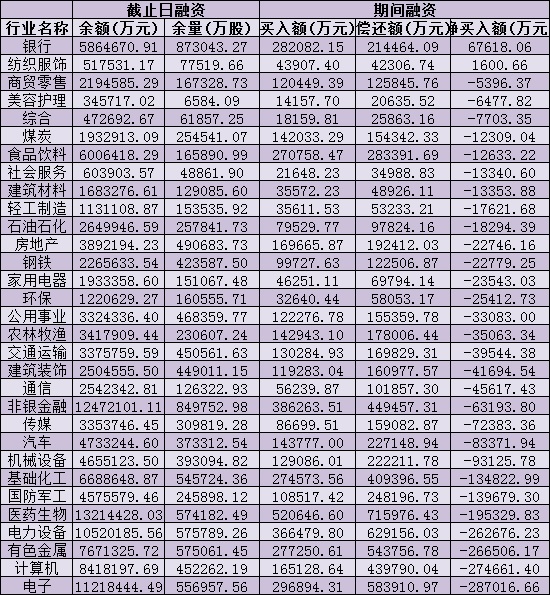 表:4月25日申萬(wàn)一級(jí)行業(yè)兩融交易情況:
