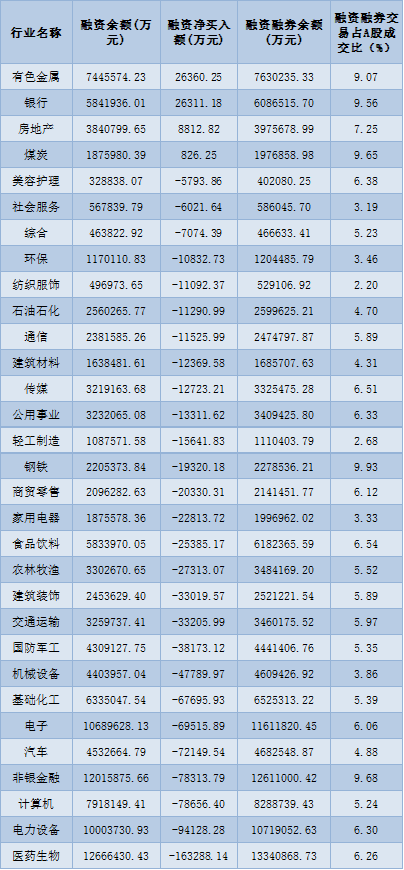 表:4月29日申萬(wàn)一級(jí)行業(yè)兩融交易情況: