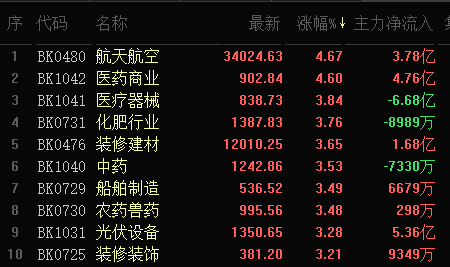 熱點(diǎn)行業(yè)方面,截至5月5日11:30,有82類東方財(cái)富行業(yè)上漲,占東方財(cái)富行業(yè)板塊總數(shù)的95.35%。其中,航天航空以4.67%居漲幅榜首,跌幅居首的行業(yè)是旅游酒店,下跌0.95%。