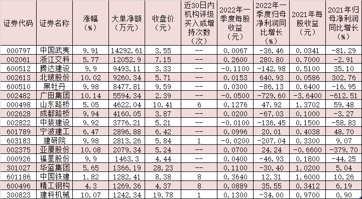 表:5月9日受到千萬元以上大單資金追捧的裝配式建筑概念股