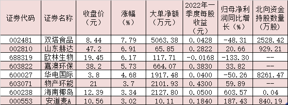 表:5月10日股價實現(xiàn)上漲且獲大單資金追捧的生物經(jīng)濟概念股