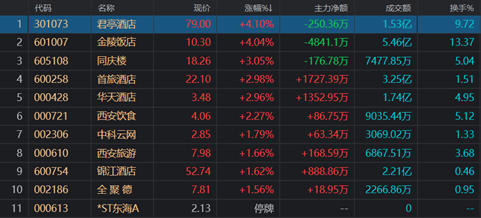 同花順行業(yè)來看,酒店及餐飲行業(yè)漲幅居前,漲幅為2.60%,收報1304.807點。