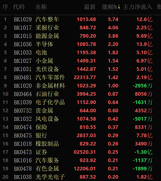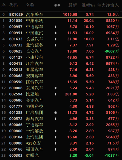 從領(lǐng)漲的汽車整車行業(yè)看,截至5月17日11:30,行業(yè)中有4只個股封漲停板。