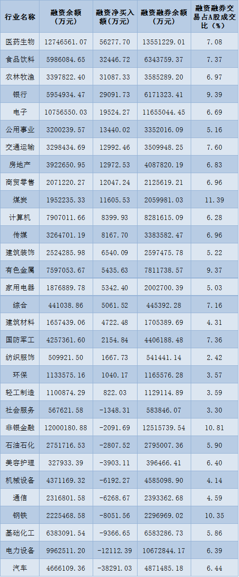 表:5月16日申萬一級行業(yè)兩融交易情況: