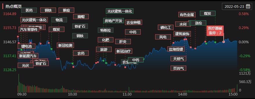 具體來看,5月23日,汽車整車板塊領(lǐng)漲,中通客車、亞星客車等個股多只個股漲停;黑色金屬、化肥、轉(zhuǎn)基因、鹽湖提鋰等板塊表現(xiàn)活躍;露營經(jīng)濟(jì)板塊領(lǐng)跌,酒店及餐飲、租售同權(quán)、機(jī)場航運(yùn)、物業(yè)管理等板塊跌幅居前。