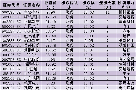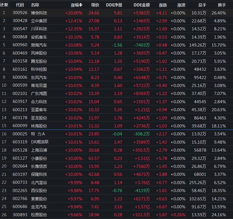 6月2日,汽車行業(yè)漲幅居首,達(dá)2.85%。其中,包括東風(fēng)汽車、小康股份、特力A、廣東鴻圖、騰龍股份、科華控股、保隆科技、渤海汽車、合力科技等在內(nèi)的28只汽車股集體漲停。