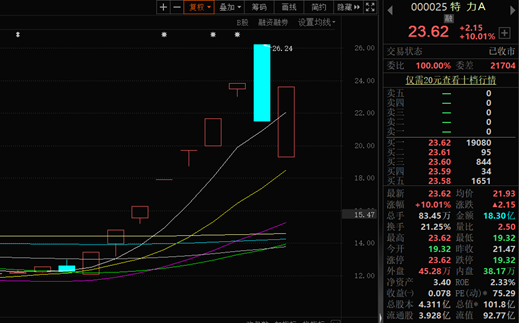 其實,昨天特力A還上演“天地板”走勢,周一早盤從漲停板開盤后直線跳水,14:07封死跌停直至收盤。全天成交金額16.3億元,換手率17%。