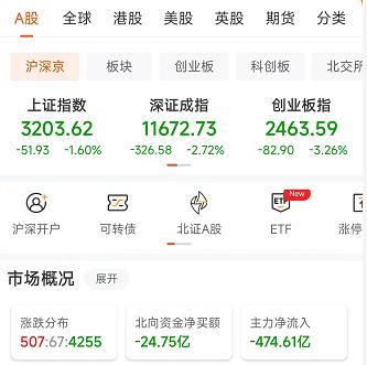 6月14日上午,A股三大指數(shù)集體低開低走,創(chuàng)業(yè)板指數(shù)跌超3%。截至上午11:30,上證指數(shù)跌1.6%,報3203.62點;深證成指跌2.72%,報11672.73點,創(chuàng)業(yè)板指跌3.26%,報2463.59點;滬深兩市合計成交額6677億元;總體來看,A股市場個股跌多漲少,上漲個股為507只,下跌個股4255只。