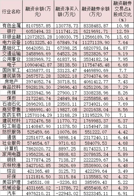 表:6月13日申萬一級行業(yè)兩融交易情況: