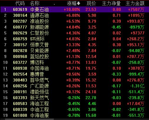 從領(lǐng)漲的油氣開采及服務(wù)行業(yè)看,截至6月14日11:30,行業(yè)的21只個股中,中曼石油漲停,準油股份、通源石油等2只個股漲幅均超6%。