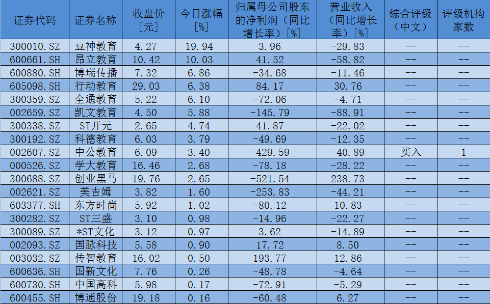 表:6月15日,教育板塊實(shí)現(xiàn)上漲個(gè)股一覽
