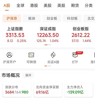 6月16日,A股三大指數(shù)上午集體上漲,創(chuàng)業(yè)板指數(shù)漲超1%。截至上午11:30,上證指數(shù)漲0.25%,報(bào)3313.53點(diǎn);深證成指漲1.04%,報(bào)12263.50點(diǎn),創(chuàng)業(yè)板指漲1.44%,報(bào)2612.22點(diǎn);滬深兩市合計(jì)成交額6676.86億元;總體來看,A股市場個(gè)股漲多跌少,上漲個(gè)股為3684只,下跌個(gè)股980只。