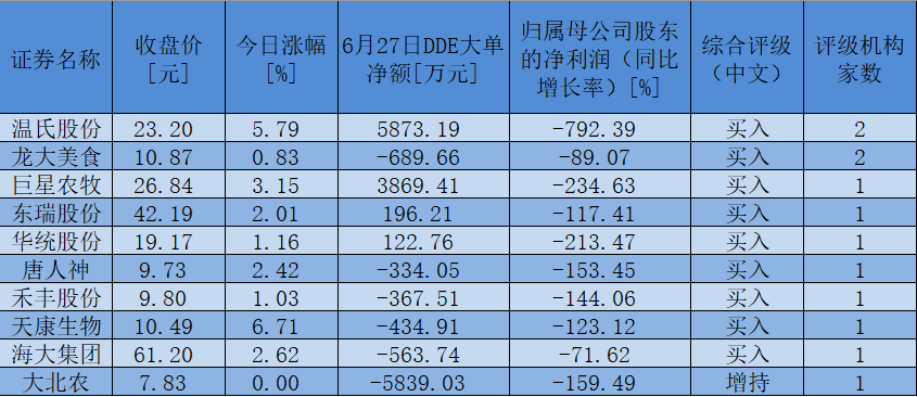 表:截至6月27日,最近30日內(nèi),獲機(jī)構(gòu)看好評(píng)級(jí)的豬肉股一覽