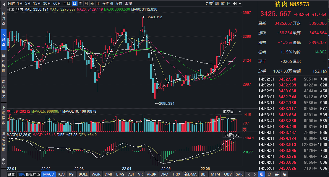 “生豬5月份以來出欄量持續(xù)下降,疊加即將進(jìn)入豬肉消費(fèi)旺季,在題材、資金等多重因素作用下今日生豬期貨價(jià)格大幅上漲。”東吳期貨農(nóng)產(chǎn)品研究員郭大順對(duì)《證券日?qǐng)?bào)》記者說。